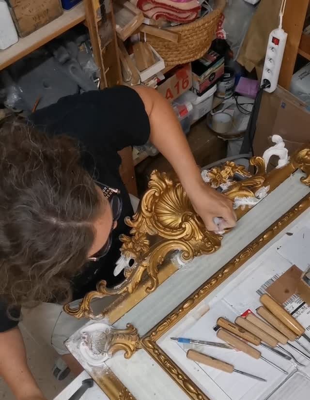 Géraldine Arbore est artisan doreur. Elle est spécialisée dans la restauration et la conservation de bois dorés à l’or fin, ainsi que d’objets en bois sculpté, rehaussés de feuilles d’or ou de cuivre. Que ce soit pour préserver un patrimoine ou donner vie à une création contemporaine, elle sublime vos projets avec passion et précision !